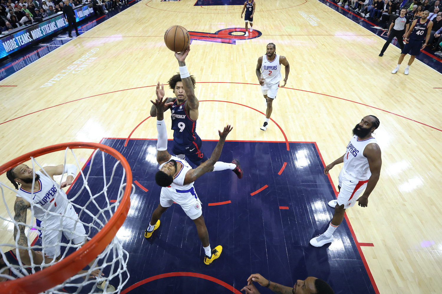 Oubre was driving to the basket when Paul George of the Clippers blocked his path and they made contact.