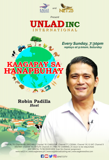 Hosted by Robin Padilla, UNLAD: Kaagapay sa Hanapbuhay is NET25’s show that tackles agriculture, livelihood, and entrepreneurship. It is aired every Sunday from 7:30 PM to 8:00 PM with replays on Saturday at 9:00 AM.