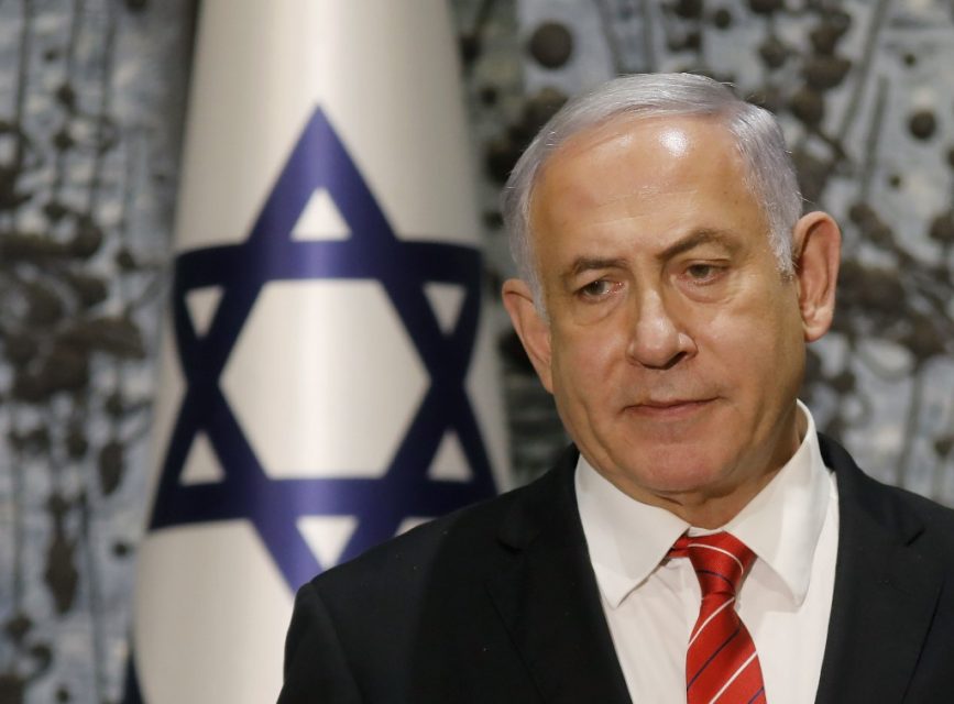 (FILES) In this file photo taken on September 25, 2019, Israeli Prime Minister Benjamin Netanyahu speaks after being tasked by President Reuven Rivlin (not in frame) with forming a new government, during a press conference in Jerusalem. – Netanyahu informed the country’s president on October 21, 2019, he could not form a new government following deadlocked September elections, making way for his opponent Benny Gantz to try. “A short time ago I informed the president that I was handing back my mandate to try to form a government,” Netanyahu said in a video posted on his official Facebook page. (Photo by Menahem KAHANA / AFP)