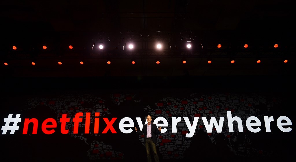 Netflix CEO Reed Hastings gives a keynote address, January 6, 2016 at the CES 2016 Consumer Electronics Show in Las Vegas, Nevada. AFP PHOTO / ROBYN BECK (Photo by ROBYN BECK / AFP)