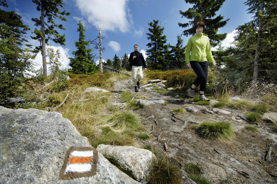 The trail usually starts at an easily reachable public place like a square or park entry where the initial guidepost is located with directions marked by colored arrows and distances. The trail is then marked with basic markers.