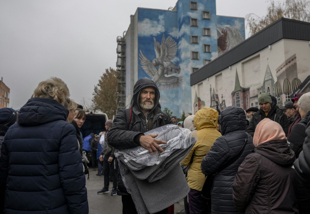 On Thursday, Kherson residents rushed to stockpile food, blankets, diapers and winter clothing, with shouting matches and shoving erupting as volunteers tossed supplies into the crowds that had waited hours in freezing rain.
