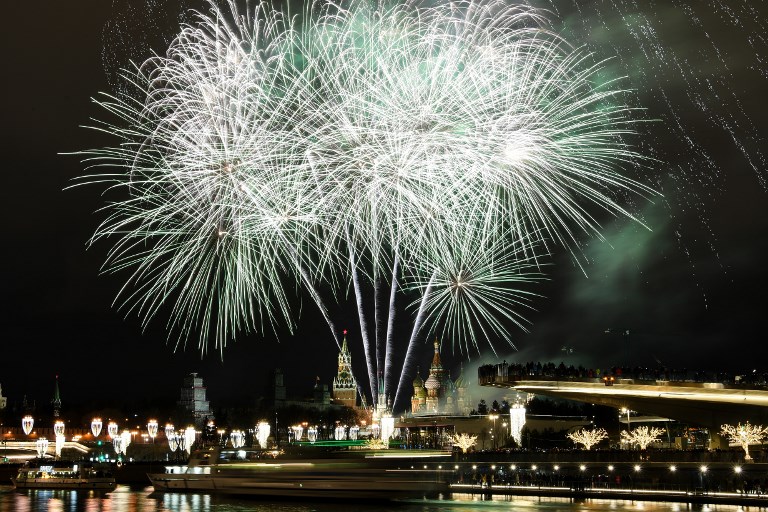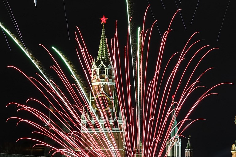 Fireworks explode over the Kremlin during New Year celebrations in central Moscow early on January 1, 2018 / AFP PHOTO / Kirill KUDRYAVTSEV