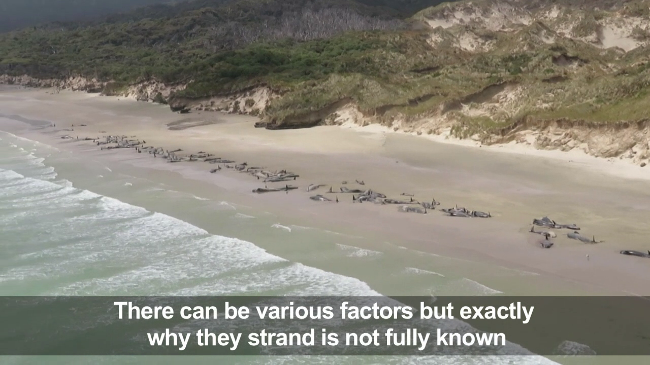 The reason whales and dolphins strand is not fully understood but factors can include sickness, navigational error, geographical features, the presence of predators, and extreme weather.