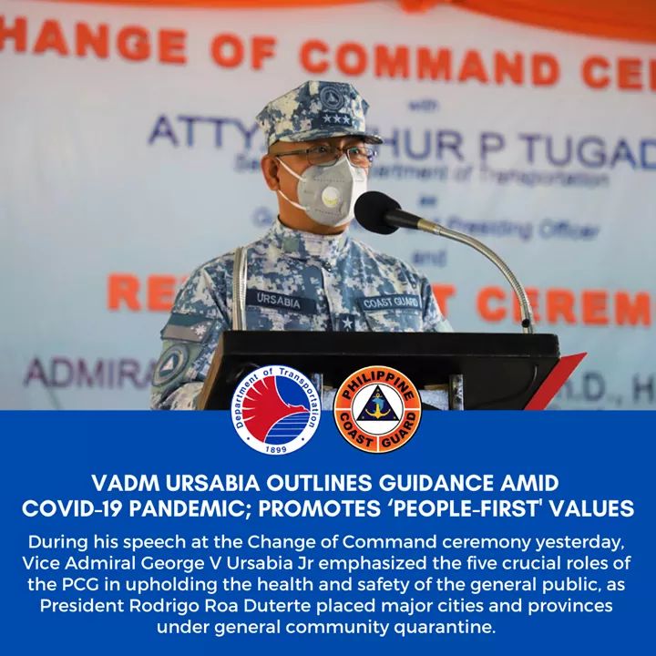 (Eagle News)–Newly-appointed Philippine Coast Guard commandant Vice Admiral George Ursabia Jr. emphasized the role of the PCG in ensuring the health and safety of the public amid the COVID-19 pandemic.