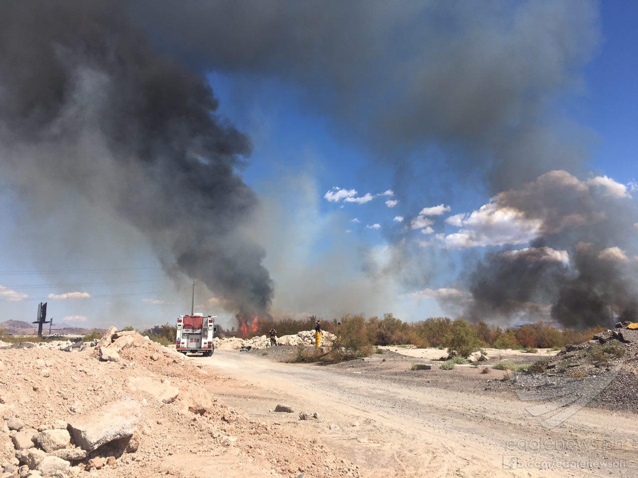 A blazing fire has slowed traffic down on interstate 515- 95 southbound in Las Vegas, Nevada. The cause for the fire is still unknown. Firefighters are on the scene. Photo taken by EBC Las Vegas correspondent Aljamin Santos, Sunday, Sept. 17, 2017. (Eagle News Service)