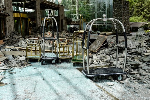 News in photo: Luggage trolley carts amid quake rubble in China