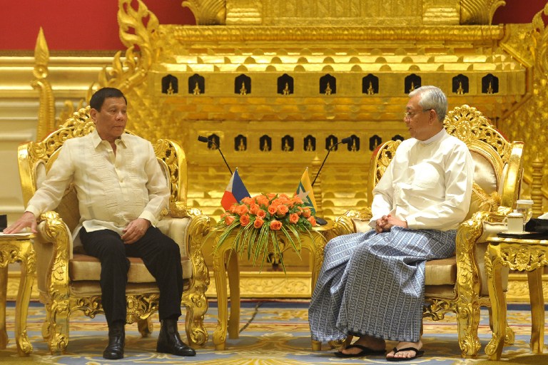 Duterte’s visit coincided with the 60th anniversary of ties between the two countries. / AFP PHOTO / AUNG HTET