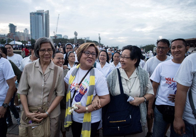 (Eagle News) — Senator Leila de Lima, who is facing drug-related charges for her alleged role in the proliferation of the illegal drug trade at the New Bilibid Prisons in Muntinlupa City, is seen here in this photo attending the rally organized by the Catholic Church criticizing the extrajudicial killings which priests, bishops, and human rights advocates blame on the drug war of President Rodrigo Duterte.