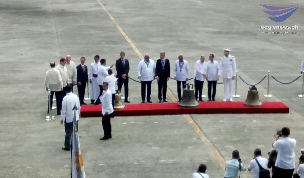 Defense officials led by Defense Secretary Delfin Lorenzana and US embassy officials led by US Ambassador Sung Kim led the turnover ceremony for the bells, which had been taken by American soldiers from Balangiga, Eastern Samar as war booty during the Filipino-American war in 1901.
