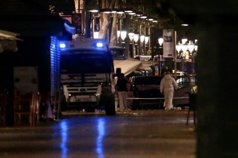 Officers in Spain’s second-largest city said the ramming on Las Ramblas was a “terrorist attack”. The driver of a van that mowed into a packed street in Barcelona is still on the run, Spanish police said. / AFP PHOTO / Josep LAGO