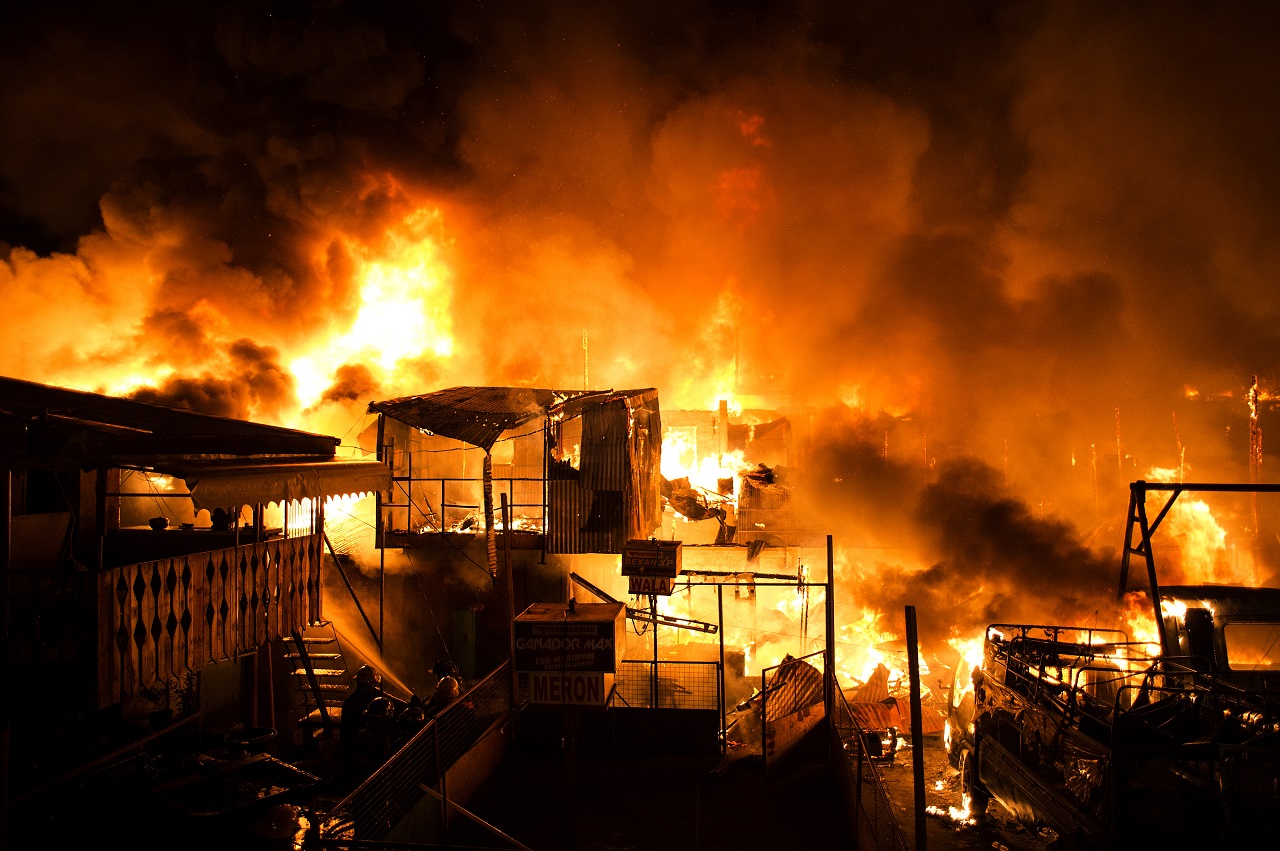 A fire burns through an informal settlers community as it burns hundreds of houses in Delpan, Tondo, Manila on February 7, 2017.