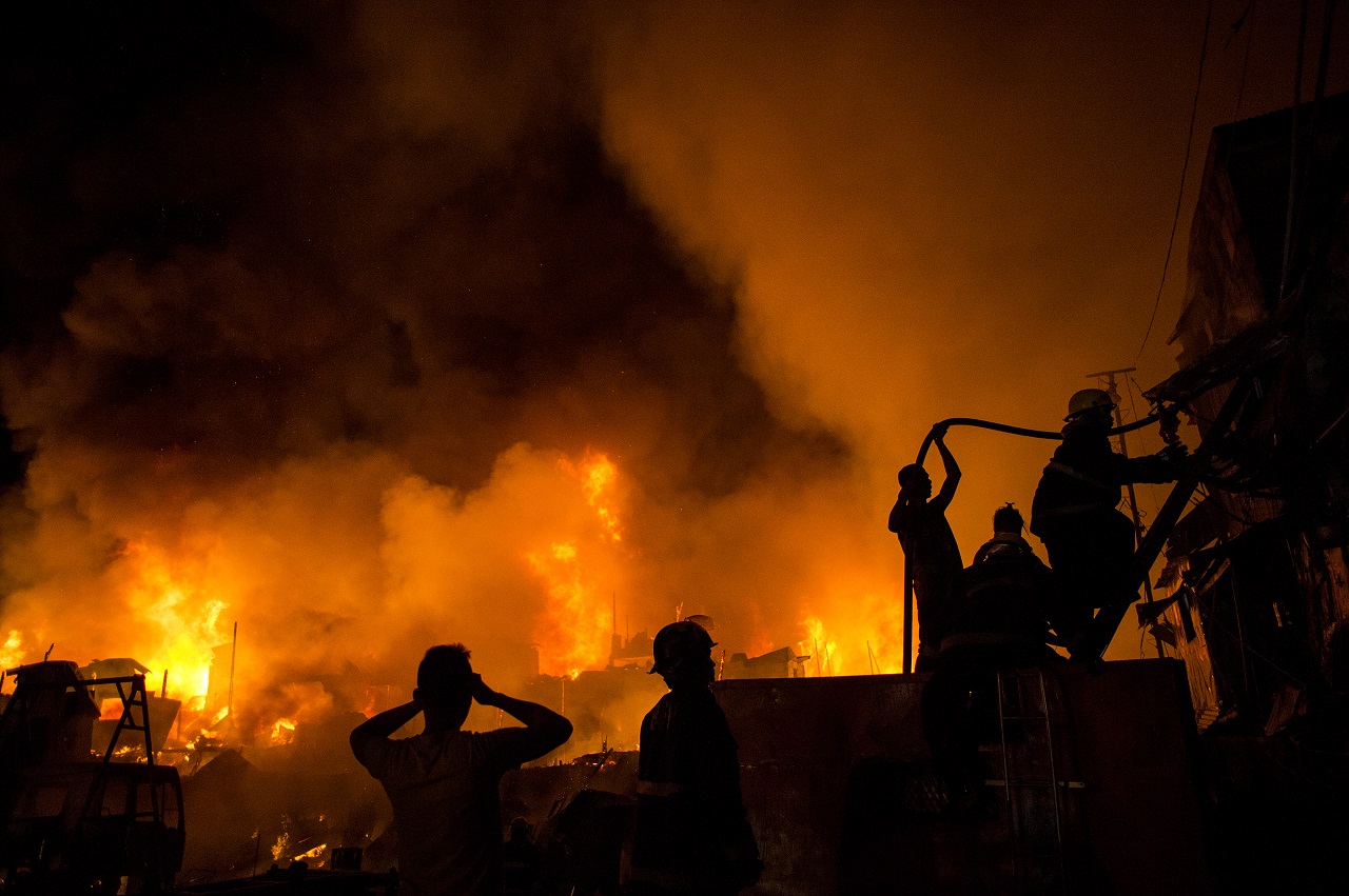 A fire burns through an informal settlers community as it burns hundreds of houses in Delpan, Tondo, Manila on February 7, 2017.
