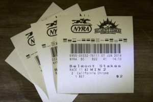 Wager tickets are pictured on a table in this photo illustration before the 146th running of the Belmont Stakes in Elmont, New York June 7, 2014. REUTERS/Carlo Allegri