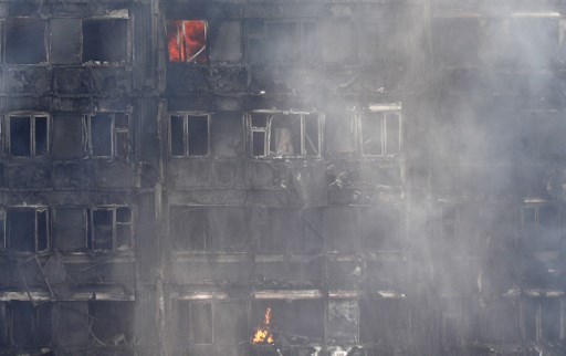 Shaken survivors of a blaze that ravaged a west London tower block told Wednesday of seeing people trapped or jump to their doom as flames raced towards the building’s upper floors and smoke filled the corridors. / AFP PHOTO / Adrian DENNIS