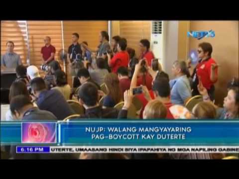 QUEZON City, Philippines – According to the National Union of Journalists of the Philippines, there will be no boycott against President-elect Rodrigo Duterte and that journalists will not stop doing their duty of guarding against government anomalies despite the calls of other members of the media calling for a boycott against the incoming President after he allegedly made foul statements against the media. NUJP added that although it cannot be denied that there are corrupt media members, still this is not enough reason to justify media killings.