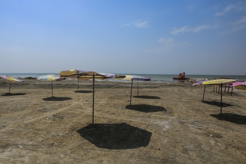Shops like Mohamed’s and holiday homes by the lake now sit empty in the height of summer. On the beach, stray dogs wander between unused umbrellas.