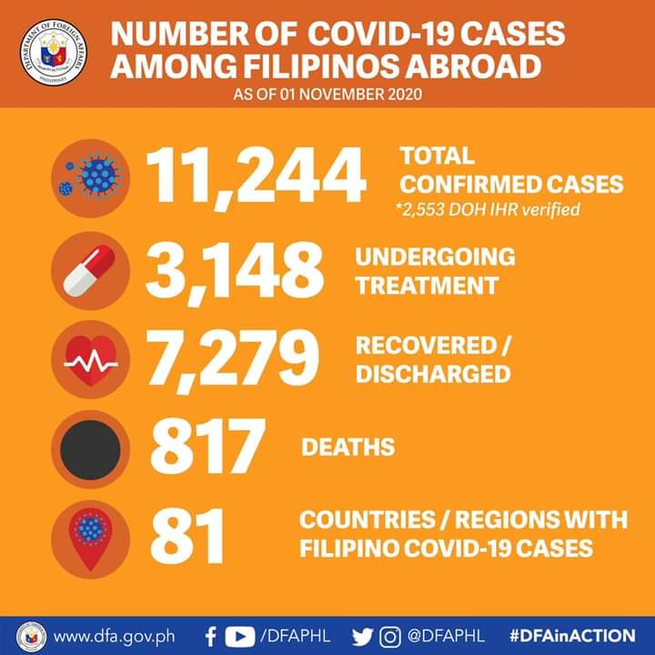 (Eagle News)–There were no new COVID-19 recoveries, cases or deaths reported among overseas Filipinos.
