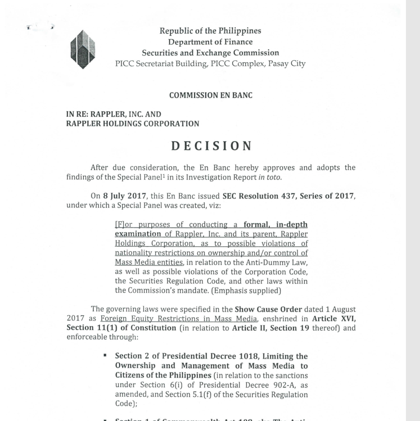 Roque also noted that the SEC’s decision revoking Rappler’s Certificate of Incorporation because of violations on the Constitutional requirement that Philippine mass media be 100% be owned by Filipinos, showed that no one is above the law.