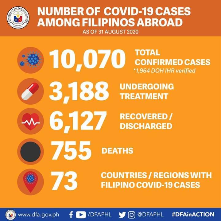 The DFA said one additional COVID-19 case was reported, bringing the total to 10,070.