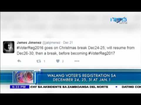 QUEZON City, Philippines – The Commission on Elections – through a tweet made by COMELEC spokesperson James Jiminez – will stop conducting voters’ registration from December 24 – 25 and December 31 – January 1. Voters’ registration will resume from December 26 – December 30 and onward from January 2 to April 29, 2017.