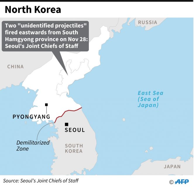 SEOUL, South Korea (AFP) — North Korea fired two “unidentified projectiles” on Thursday, Seoul said, as nuclear talks between Pyongyang and Washington remain deadlocked.