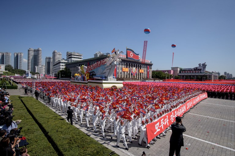 PYONGYANG, North Korea (AFP) – Thousands of North Korean troops followed by artillery and tanks paraded through Pyongyang Sunday as the nuclear-armed country celebrated its 70th birthday, but it refrained from displaying the intercontinental ballistic missiles that have seen it hit with sanctions.
