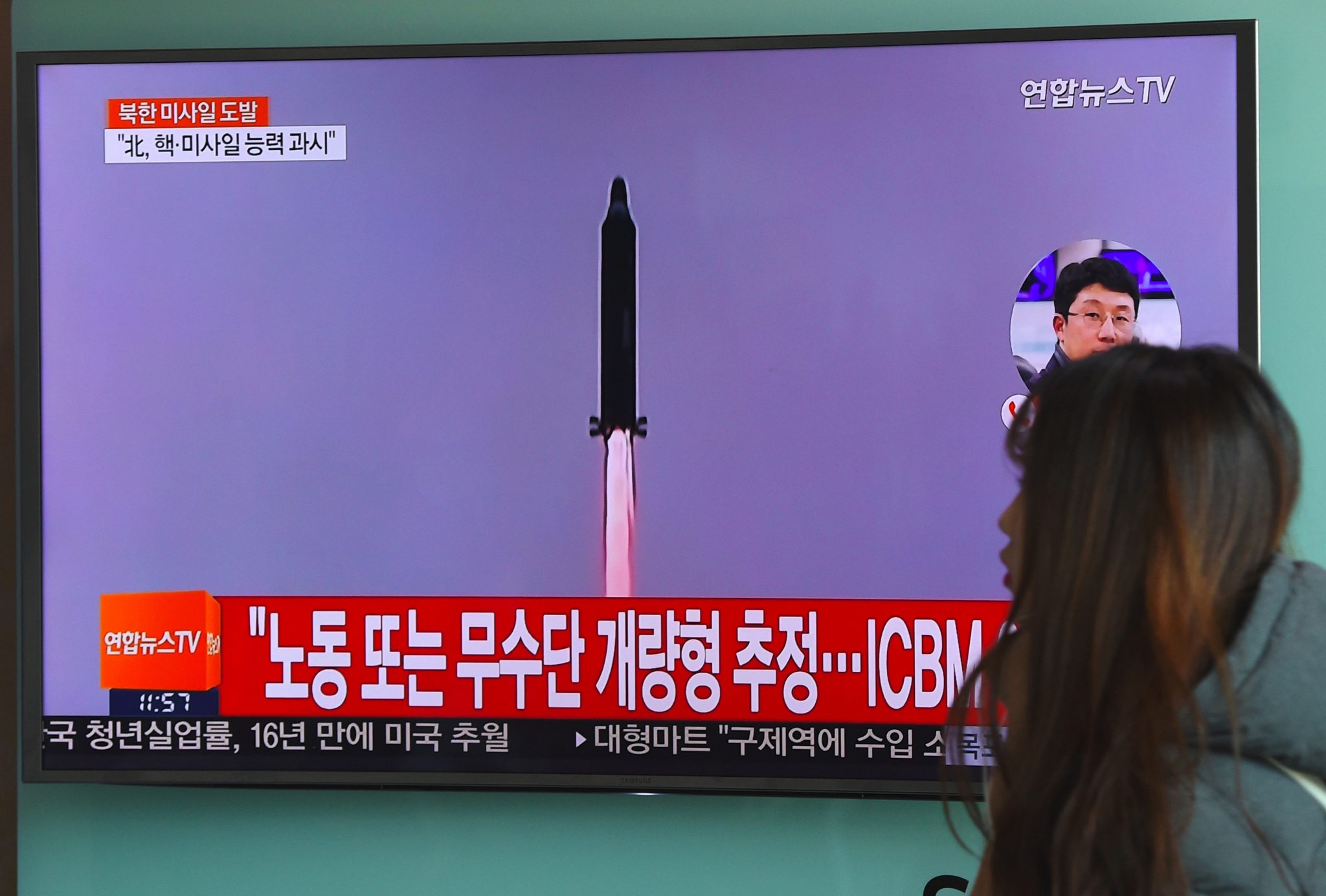North Korea fired a ballistic missile on February 12 in an apparent provocation to test the response from new US President Donald Trump, the South Korean defense ministry said. / AFP PHOTO /