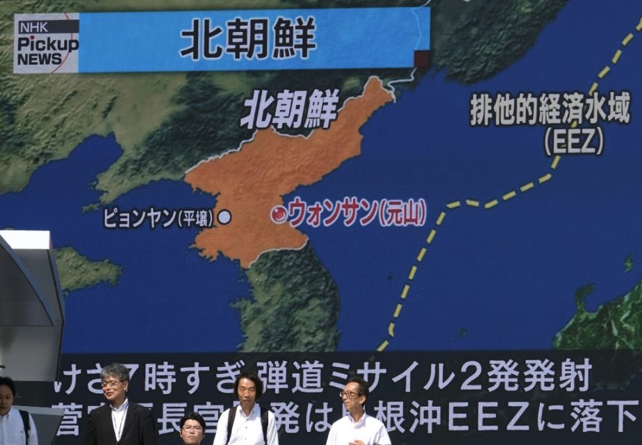 Tokyo said a part of the missile landed in waters within Japan’s exclusive economic zone — a 200-kilometer (124-mile) band around Japanese territory.