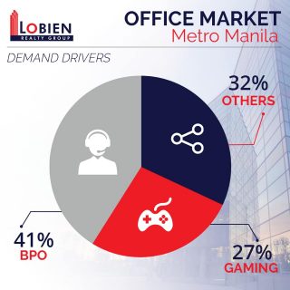 LRG continues to observe that the Business Process Outsourcing (BPOs) and On-line gaming companies (POGOs) are main drivers in the demand for office space, taking up 41% and 27%, respectively.
