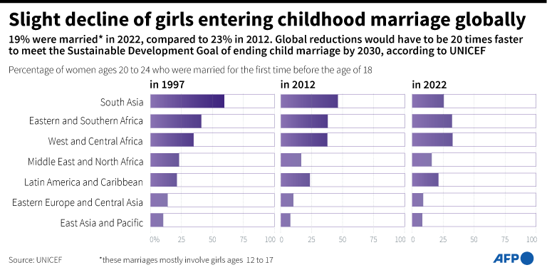 “We definitely have made progress in the abandonment of the practice of child marriage, particularly in the last 10 years. Unfortunately, this progress was not enough,” Claudia Cappa, lead author of the UNICEF report published Tuesday, told AFP.