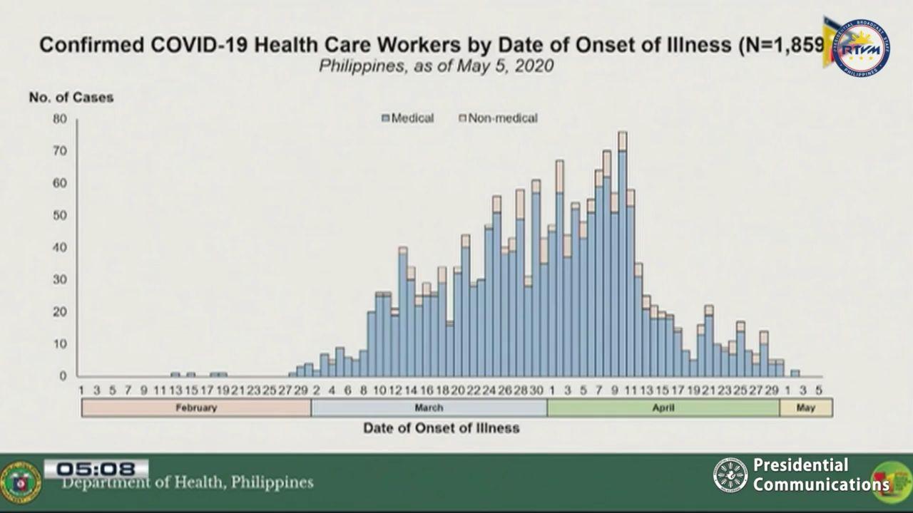 As of latest DOH data, the number of health care workers infected with COVID-19 is now at 1,859, with 380 recoveries as of Wednesday, May 6.