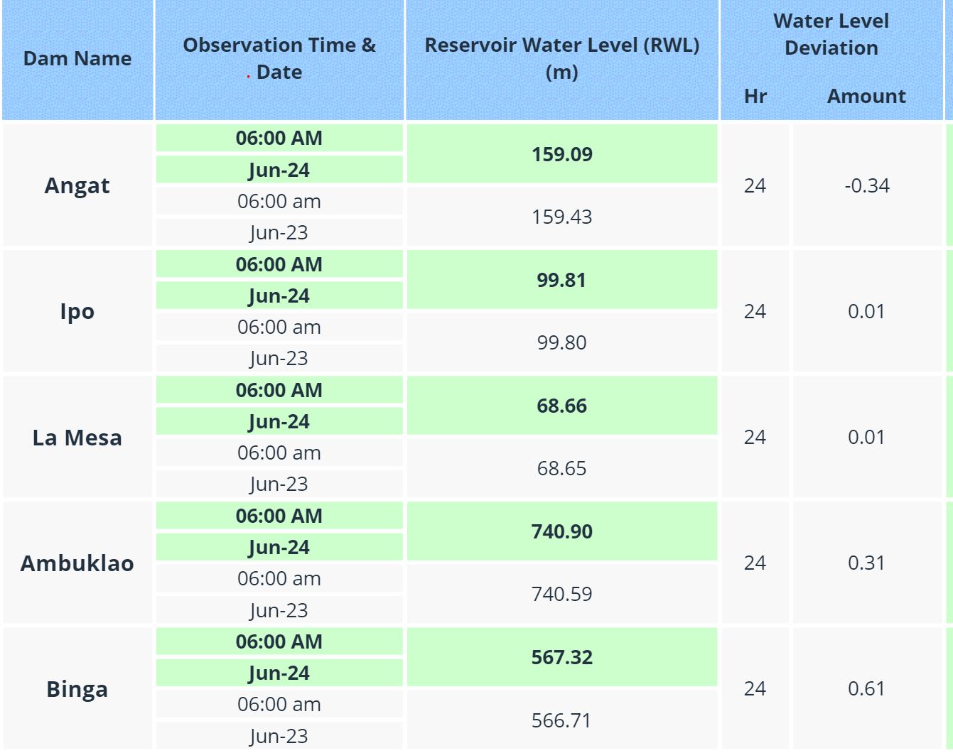On Monday, June 24, the water level registered a further low level of 159.09 meters as of 6 a.m.