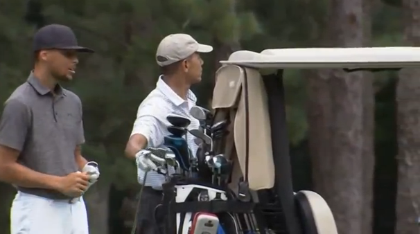 OAK BLUFFS, Massachusets, United States (Reuters) — Vacationing U.S. president Barack Obama hit the golf course again Monday (August 8), this time with NBA star Steph Curry and his father Dell Curry.
