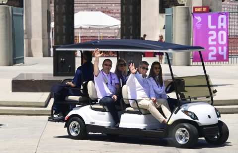 The Coliseum would once again host athletics, the premier event of the games, and US track and field star Allyson Felix was on hand to greet delegates for Thursday’s site visit.