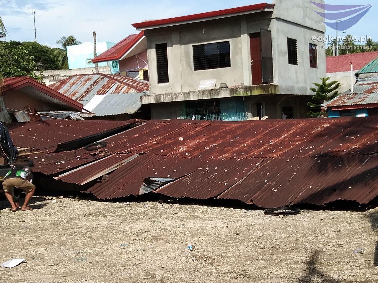 Philippine Red Cross chairman Richard Gordon tweeted photos taken by his colleagues showing buildings in Cataingan with corrugated iron roofs fallen in.