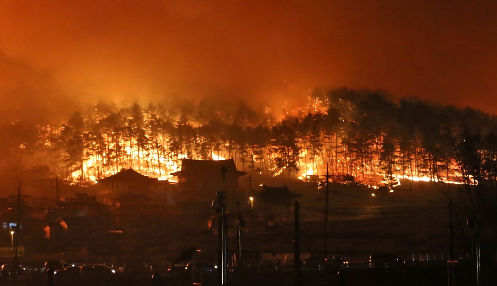 Local officials said the fire broke out alongside a road in Goseong, which is located about 210 kilometres (130 miles) northeast of the capital Seoul, in the evening hours.