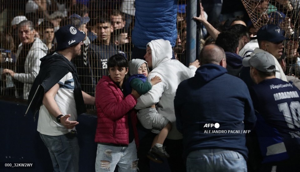 The unrest outside the Carmelo Zerillo stadium in La Plata, about 50 kilometers (31 miles) south of Argentina’s capital, continued inside, where shocked spectators were seen squeezing through fencing to escape the violence and get onto the field.