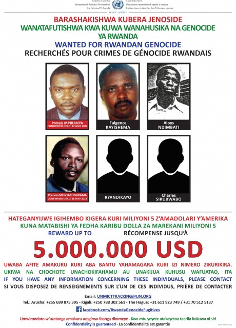 The three other fugitives on the wanted list also face multiple charges of genocide and crimes against humanity: Aloys Ndimbati; Charles Ryandikayo; and Charles Sikubwabo.