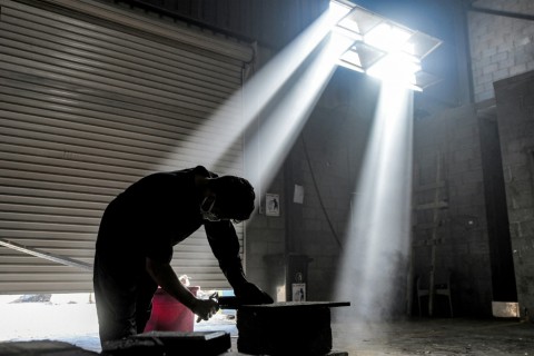 At a factory on the outskirts of Cairo, run by their startup TileGreen, noisy machines gobble up huge amounts of plastic scraps of all colours, shred them and turn them into a thick liquid.