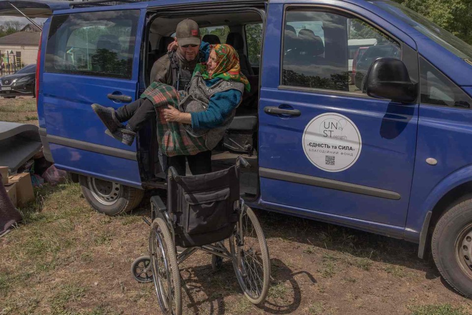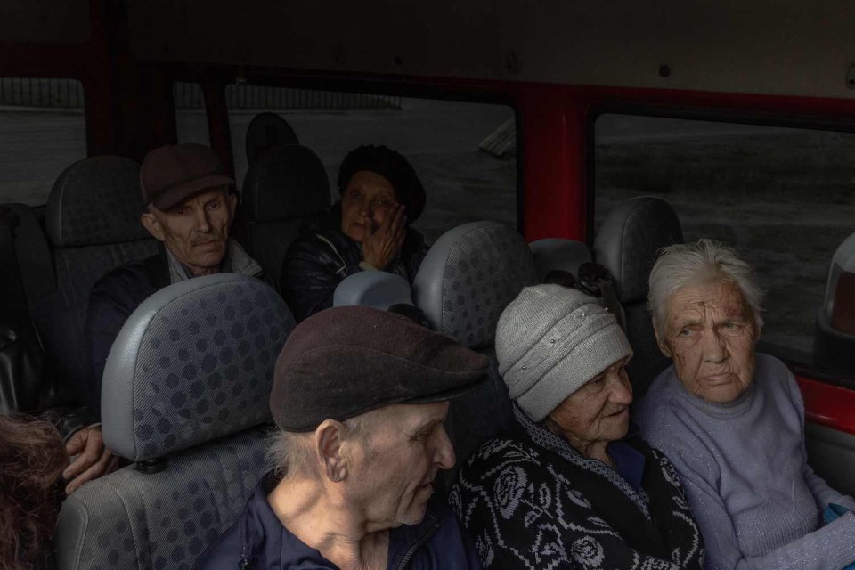 Evacuees from the Vovchansk district sit in a minivan at an evacuation point in Kharkiv region, on May 12, 2024, amid the Russian invasion of Ukraine. Thousands of people have been evacuated from border areas in Ukraine’s Kharkiv region, as Russia kept up constant strikes on a key town as part of a cross-border offensive, officials said on May 12, 2024. The surprise Russian attack across Ukraine’s northeastern border began on Friday, with troops making small advances in an area from where they had been pushed back nearly two years ago. (Photo by Roman PILIPEY / AFP)