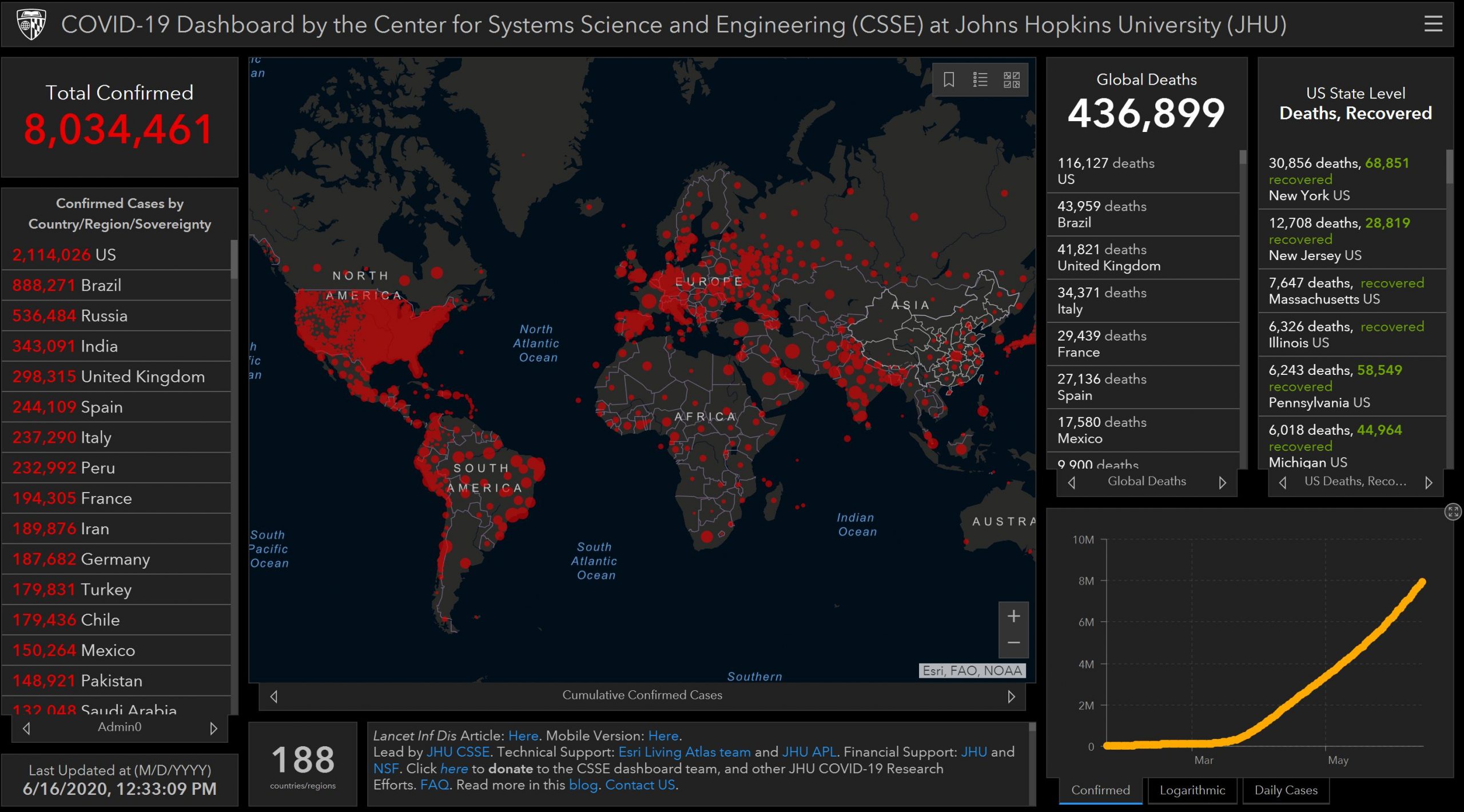 (Eagle News) – There are more than 8 million COVID-19 cases worldwide with virus-related deaths continuing to rise at 436,899, according to the latest data from the Johns Hopkins University on COVID-19 dashboard.