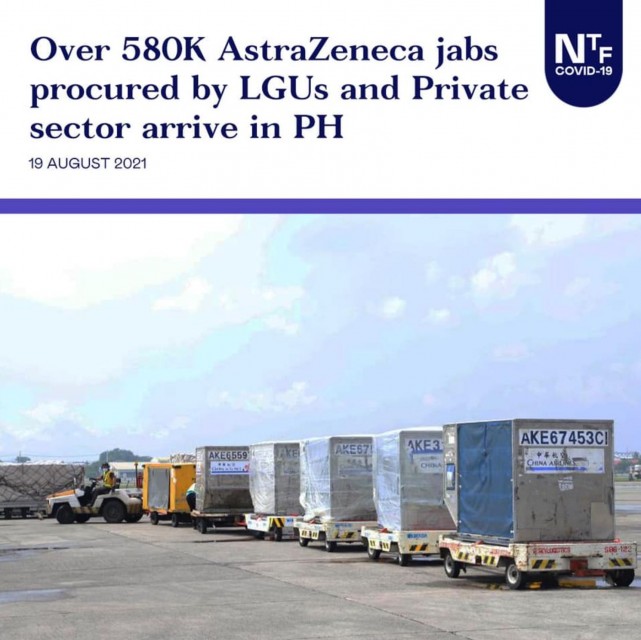 (Eagle News) – More than half a million AstraZeneca vaccine doses arrived in the country on Friday, Aug. 20, further boosting the country’s vaccine supplies which now reached more than 46.5 million doses.