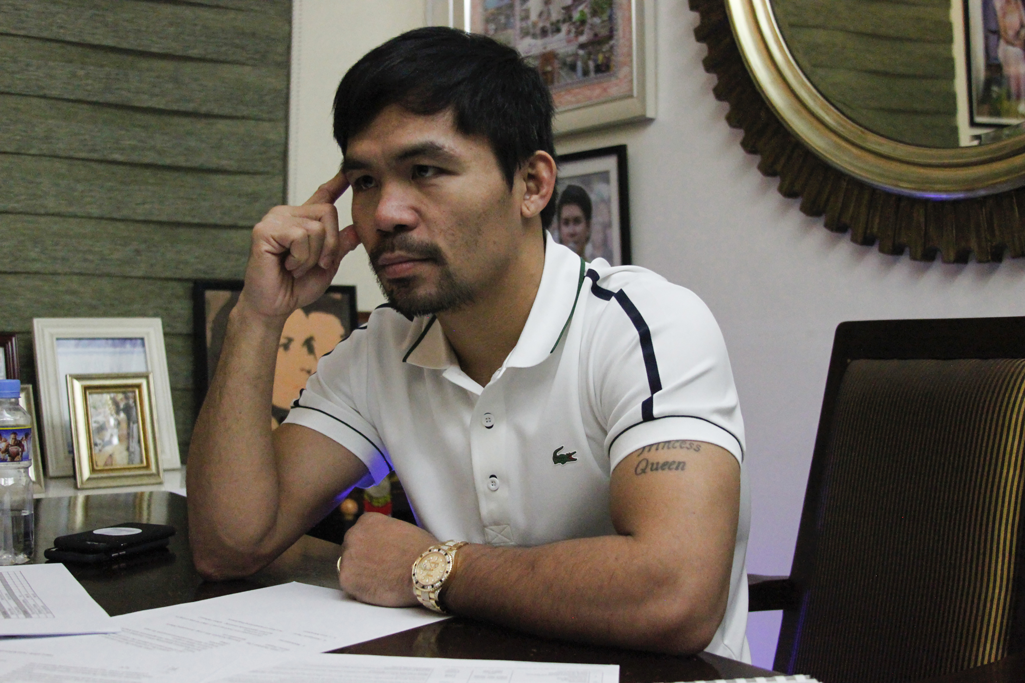 After Pacquiao defeated Timothy Bradley on April 9, he announced he was retiring from the sport to devote more time to his political career. He was elected to the Philippine Senate in May.