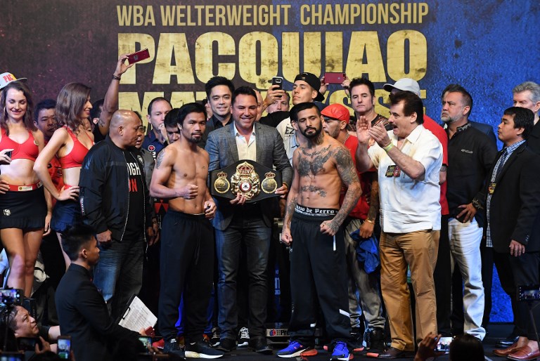 KUALA LUMPUR, Malaysia (AFP) — Filipino legend Manny Pacquiao weighed in Saturday comfortably under the 147-pound (67-kilogramme) limit and said he was “ready” to win back the welterweight belt against WBA champion Lucas Matthysse of Argentina.