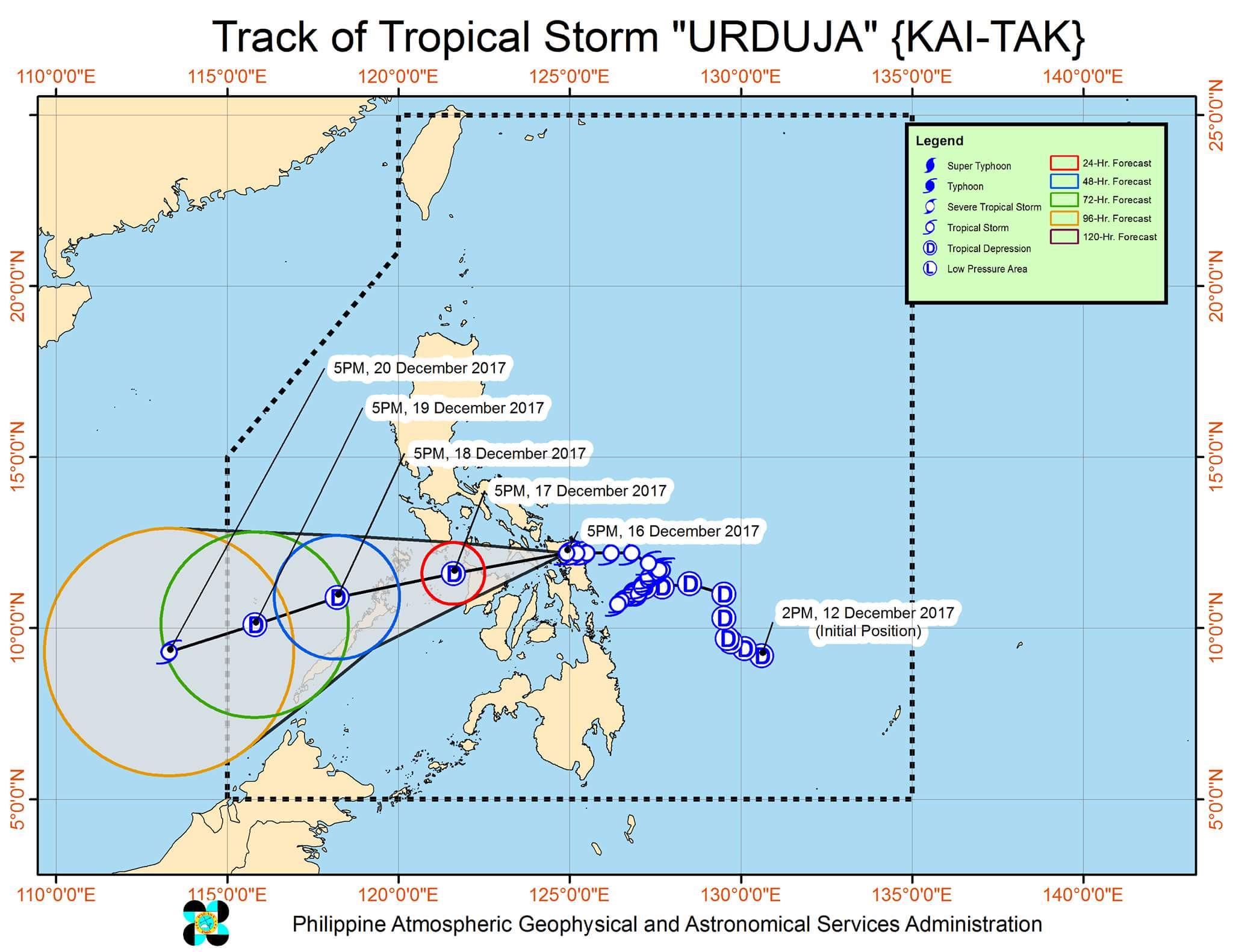 (Eagle News) — The Philippine Atmospheric Geophysical and Astronomical Services Administration is monitoring a tropical depression outside the Philippine area of responsibility as Tropical Storm “Urduja” continues to traverse the northern part of Samar.
