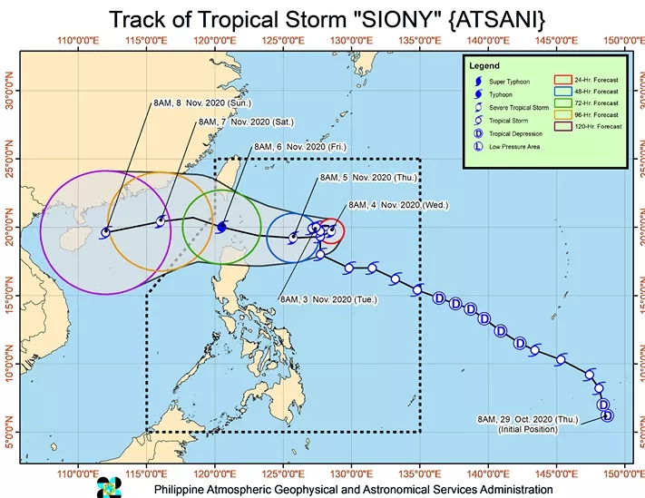 PAGASA said “Siony” is forecast to move slowly or remain stationary in the next 24 hours.