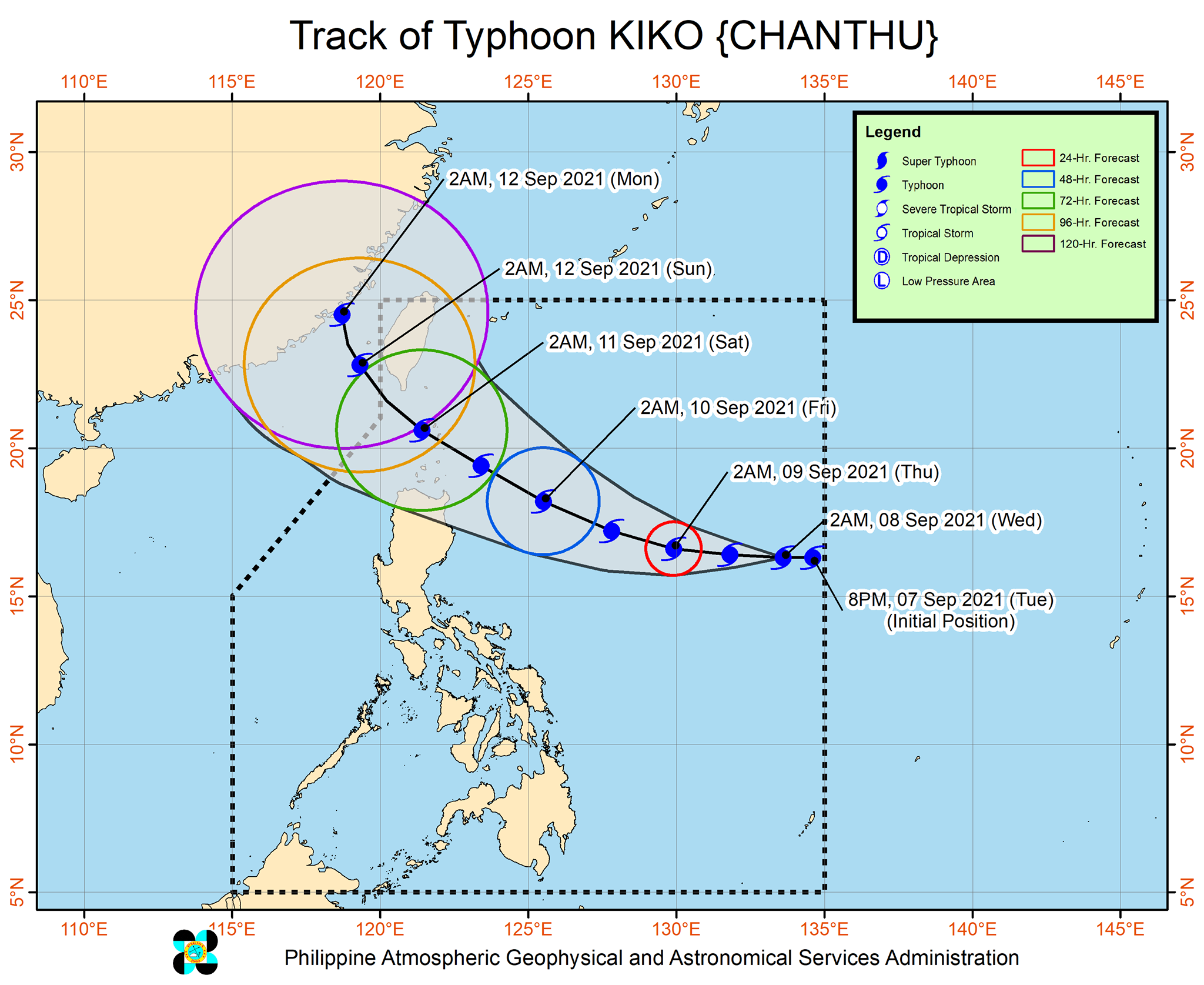 According to PAGASA, while no tropical cyclone wind signal is currently in place, the same may be hoisted over several provinces in Northern Luzon, with higher wind signal levels possible over Extreme Northern Luzon, as “Kiko” moves west northwest.
