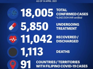 (Eagle News) — Four more Filipinos abroad have tested positive for COVID-19. The additional cases pushed the COVID-19 cases among overseas Filipinos to 18005, Department of Foreign Affairs data showed. According to the DFA, four additional recoveries also pushed the recoveries among Filipinos abroad to 11042. No additional death due to COVID-19 was reported, which means the COVID-19 death toll among overseas Filipinos remains at 1113. Based on the DFA data, the Middle East and […]