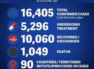 (Eagle News)–Philippine COVID-19 cases reached 795051 on Sunday, April 4, after the Department of Health reported 11028 additional cases. According to DOH data, of the total cases, 135526 were active. Of these, 97.4 percent were mild, 1 percent asymptomatic, 0.6 percent severe, 0.6 percent critical, and 0.36 percent moderate. Recoveries rose to 646100, including the 41205 additional ones. The death toll also rose to 13425, including the two additional ones. The Philippines is dealing with […]
